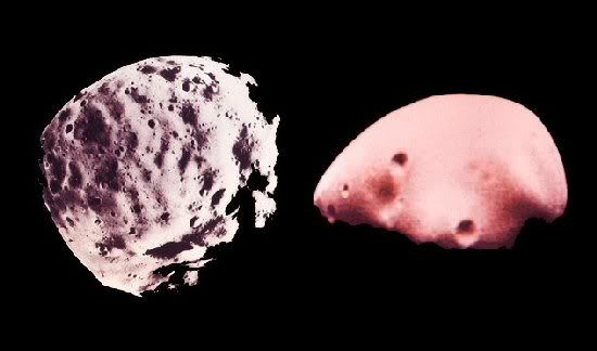 Volgens mij zijn de meeste manen ingevangen meteorieten of planetoiden. ook onze eigen maan schijnt òf ooit een deel van de aarde te zijn geweest, òf ingevangen te zijn. Echter, als een lichaam maar groot genoeg is, is de zwaartekracht sterk genoem om m dusdanig te vervormen dat ie bolvormig (niet rond) wordt. Phobos en Deimos zijn gewoon te klein.quote:Op zaterdag 5 november 2005 11:07 schreef Maethor het volgende: