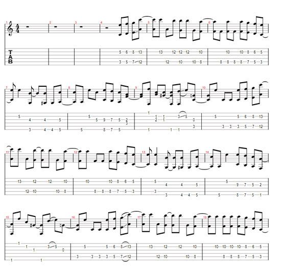 1 2 3 4 5 6 | B|---------------------------------------------------------------------------| G|---------------------------------------------------------------------------| D|---------------------------------------17----14-----x4------14----11----x4-| A|-17----14------x4----17----14------x4-----16----16-------------12----12----| E|----14----14------------16----16-------------------------------------------| |