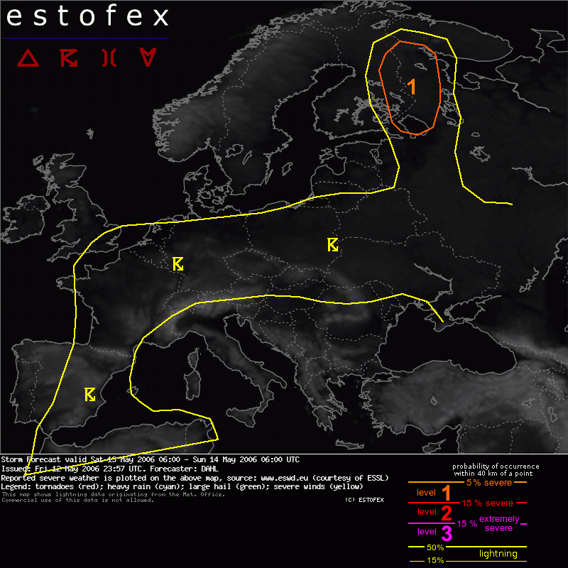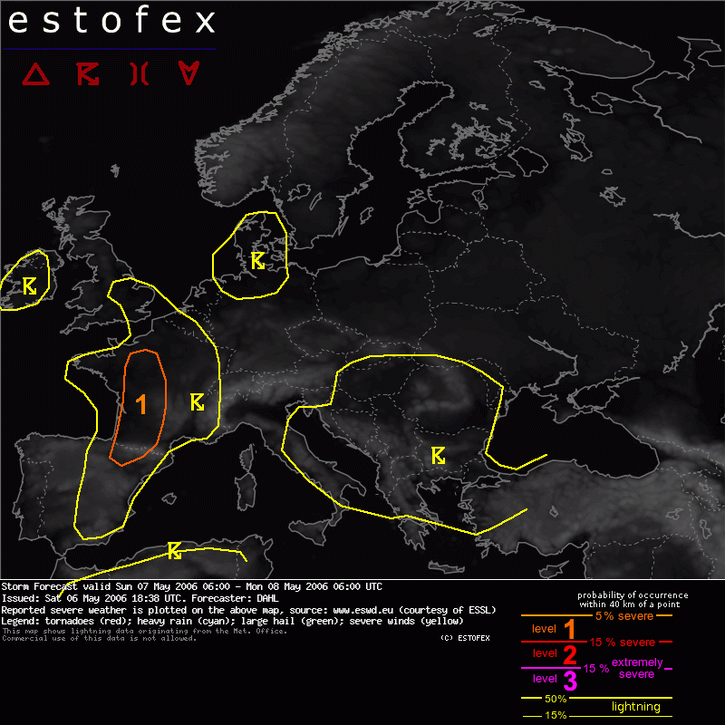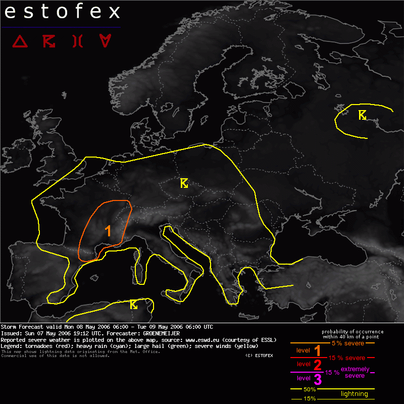 En Estofex geeft voor zowat heel Europa en mogelijke onweerskans | |