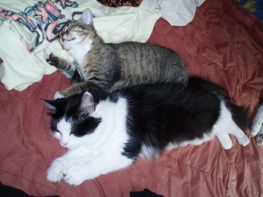 Pluim is her own nasty self weer; ze is wat dikkig geworden, maar dat schijnt te horen na de sterilisatie. Het wordt al weer minder. Beertje komt nog maar heel af en toe. En het is hartverscheurend, maar ergens zijn we er wel blij om (en hebben het een beetje aangemoedigdquote:Op donderdag 3 augustus 2006 23:33 schreef Nilasha het volgende: