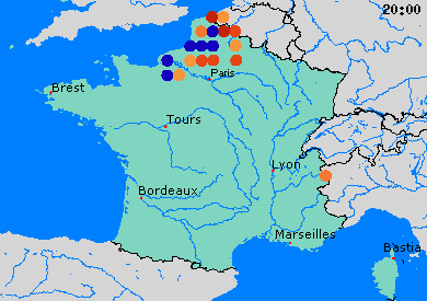 | Ik zie hier flitsen in de verte, jeuj! (hier is omgeving Leiden = Oude Wetering nu) Ik ga lekker in mn bedje liggen en naar buiten kijken!!! Truste en tot morgen! | |