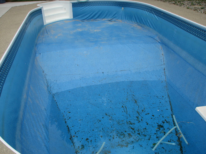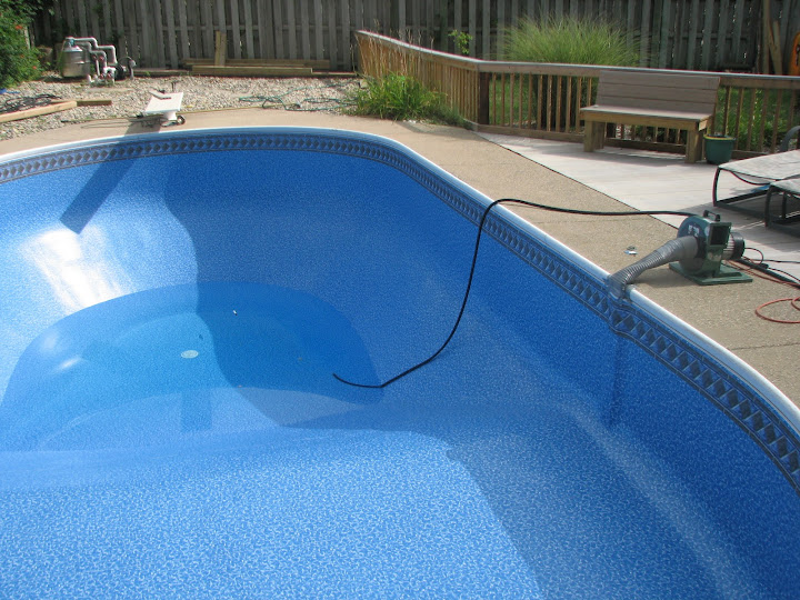 Ik moet over een week of wat het water eruit pompen, er komt een nieuwe liner in. Dan weer vullen.