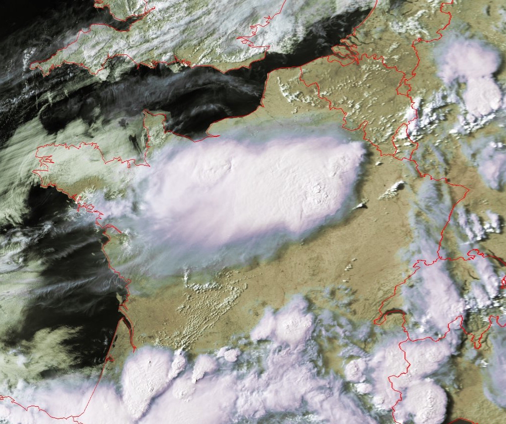 | In Frankrijk zijn stevige buien met onweer. Die richting Nederland trekken. | |